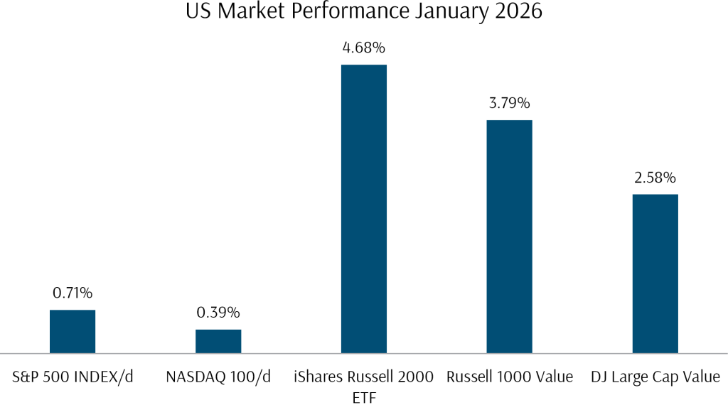 Exhibit 1: US Stock Market Performance, January 2026 (USD)