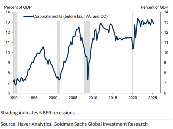 Corporate profits as a percentage of GDP are at levels much higher than during the period of the dot-com bubble so this continues to highlight that companies are still highly profitable, and investors are not chasing the stocks of companies with no product, no sales and just a webpage like in the 1990’s.