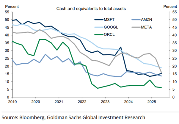 The key difference however between the dot-com period and the current stock market, is that a large part of the stock market performance is driven by companies that are highly profitable, and that these companies have so far mostly funded the capital expenditure out of their massive cash stockpiles.