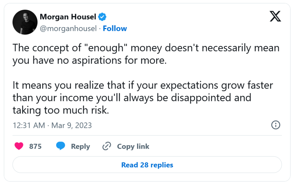 Before I go, I want to leave you with a quote from New York Times bestselling author Morgan Housel that has truly resonated with me: