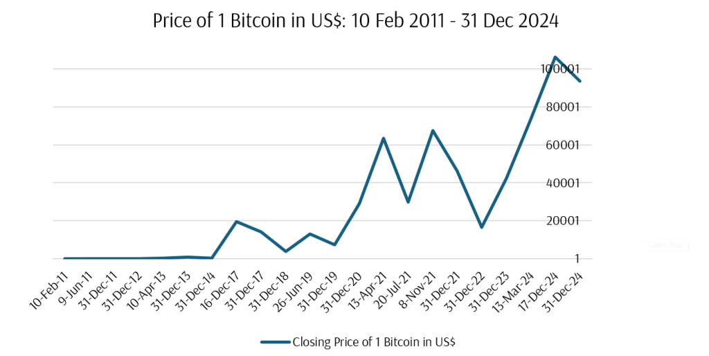 Sometime in the second half of 2021, a client asked me whether we would include cryptocurrency in our portfolio, and a prospective client who wanted to invest with us decided to invest half of his wealth in cryptocurrency instead. That was the period when Bitcoin and cryptocurrencies were doing well. Today, with US President Donald Trump being a big supporter of cryptocurrency, interest in Bitcoin and other cryptocurrencies is rising again.