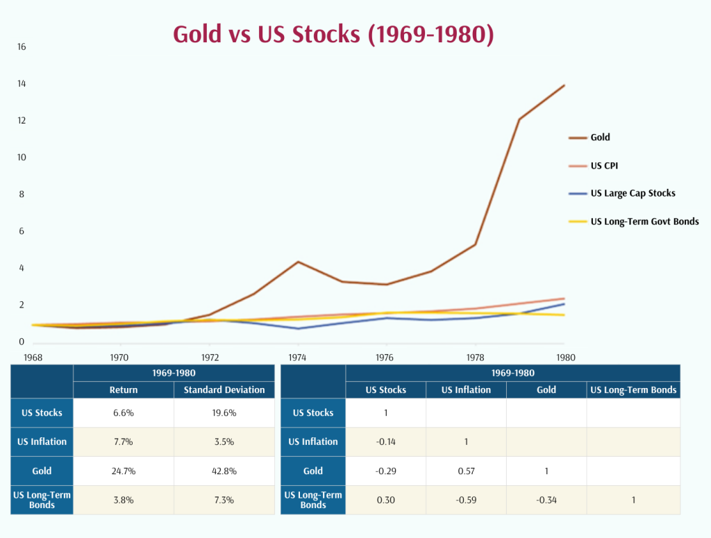 Table 4: Stocks, Bonds, Gold, and Inflation 1969-1980