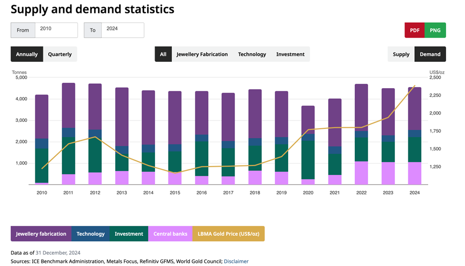 The demand side is quite interesting. Let’s take a look at the main demands for gold. First, the demand for jewellery. For example, when someone gets married, they may feel the need to have some gold items. Moreover, although gold is considered expensive, it is affordable for an increasing number of middle-class and upper-middle-class people.