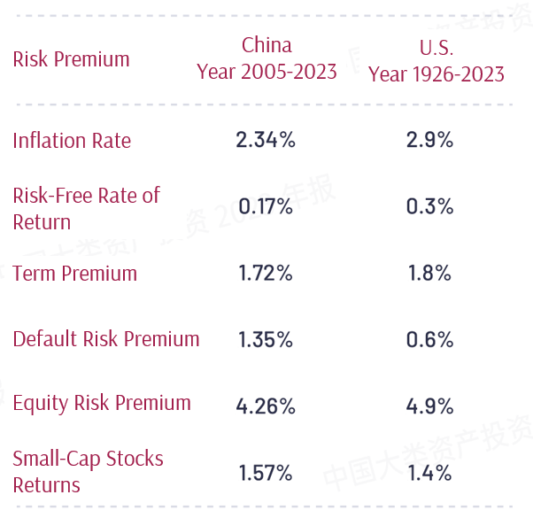 By comparing the risk premiums between the Chinese and US markets, we can observe that despite many differences between the two markets, the realised long-term average risk premiums are shockingly similar. Investors investing in the Chinese and US markets have a high degree of comparability in asset pricing across major asset classes.