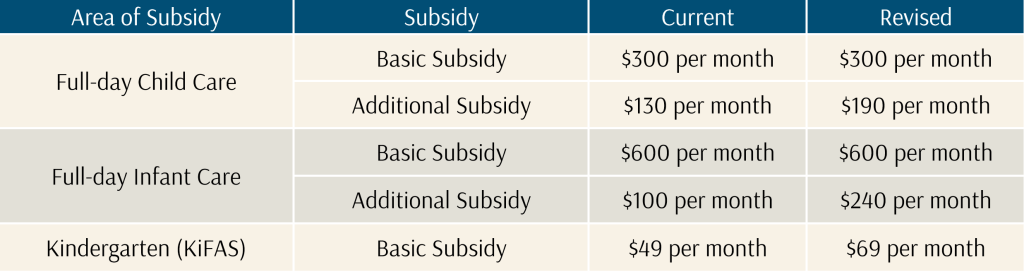 - Infant and Childcare Additional Subsidy Scheme