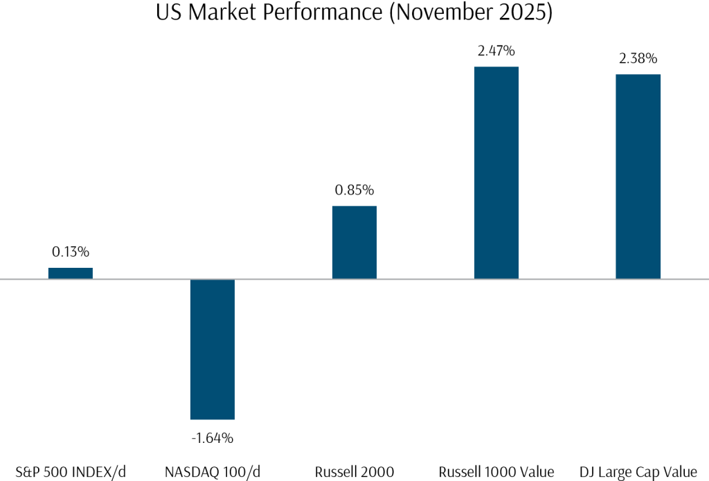 Exhibit 1: US Stock Market Performance November 2025 (USD)