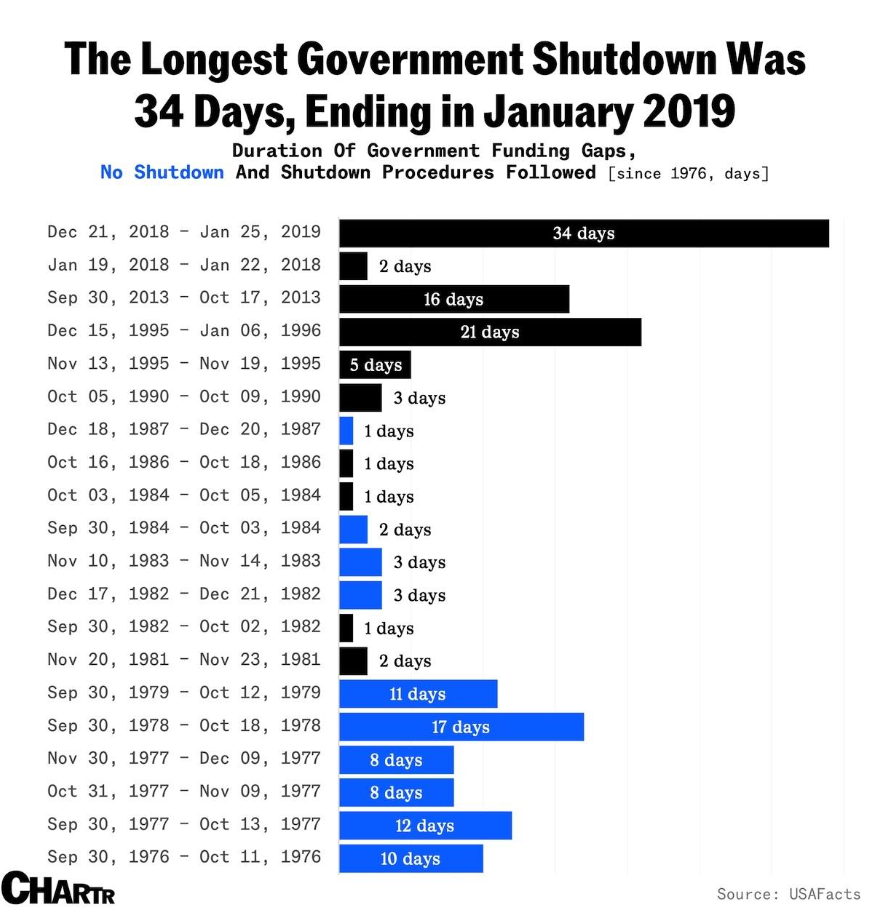 Since 1976, the US government has shut down 20 times, though not all of these resulted in a full shutdown—half of the cases successfully averted a crisis. Before the 1980s, funding gaps usually did not significantly disrupt government operations; agencies would continue functioning under the assumption that funding would eventually be approved. However, the strict enforcement of the “Anti-Deficiency Act” in the early 1980s completely changed this: simply put, the government cannot operate on credit — once funding is cut off, it must “shut down operations.”