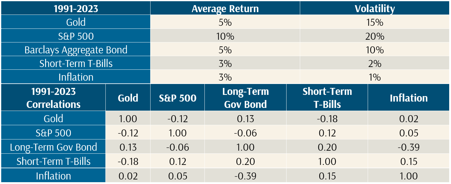 We will take a detailed look at the risk-return characteristics and the roles gold plays in a diversified portfolio in the next section.