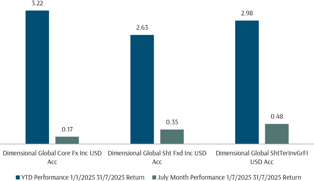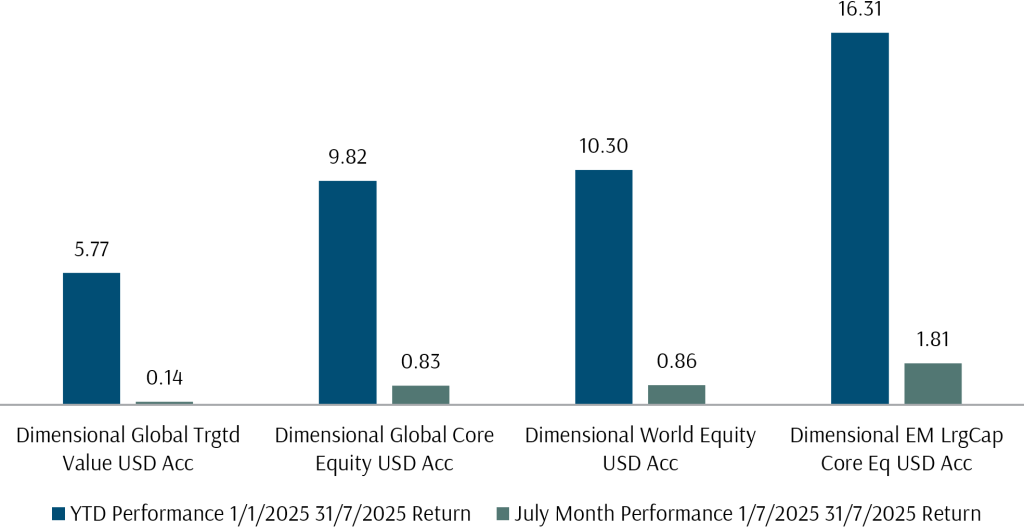 Exhibit 4: Dimensional FI Fund Performance in USD July 2025 and YTD 31 July 2025