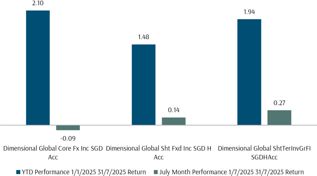 Exhibit 3: Dimensional FI Fund Performance in SGD July 2025 and YTD 31 July 2025